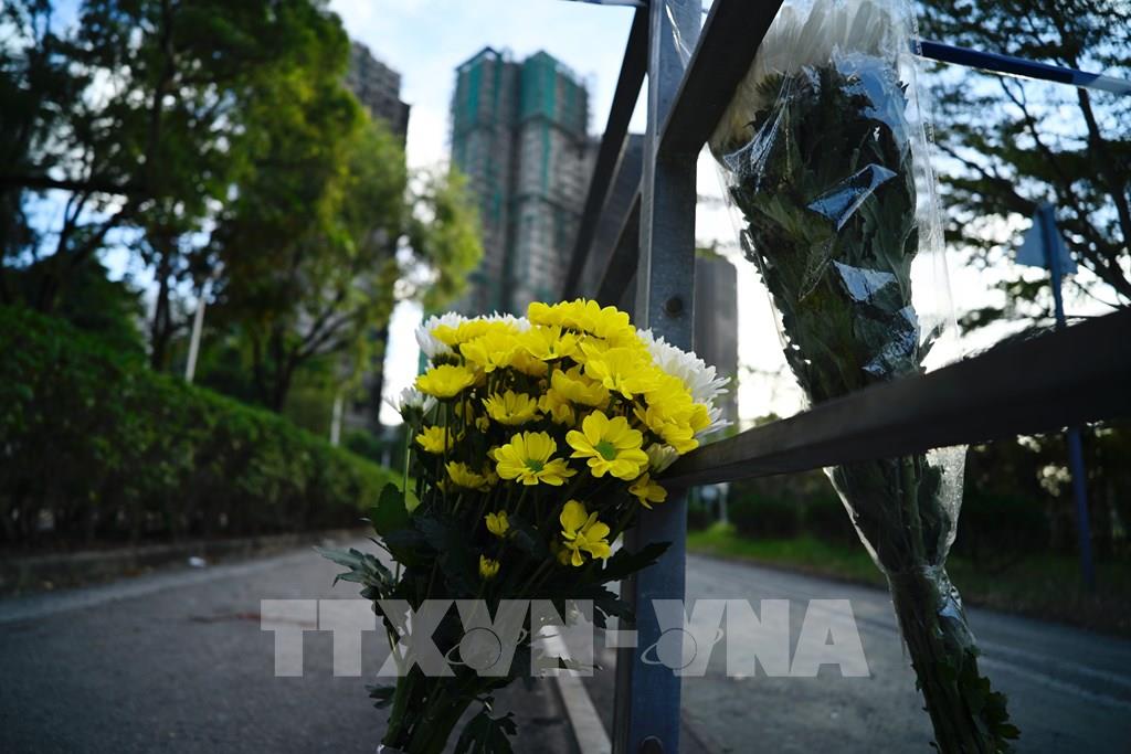 Đặt hoa tưởng niệm các nạn nhân tại khu tổ hợp Wang Fuk Court ở Tai Po, Hong Kong (Trung Quốc), ngày 29/11/2025. Ảnh: THX/TTXVN