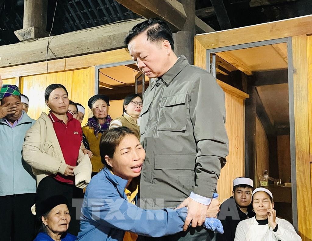 Phó Thủ tướng Chính phủ Trần Hồng Hà chia sẻ mất mát với các gia đình có người tử vong. Ảnh: Đinh Thùy - TTXVN