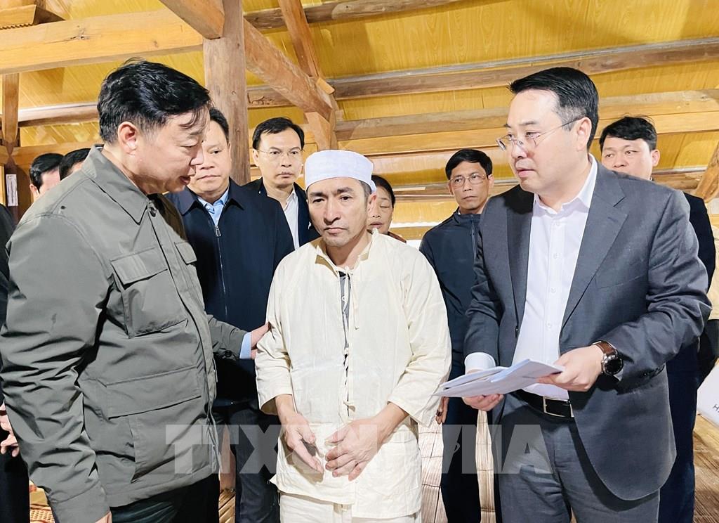 Phó Thủ tướng Trần Hồng Hà cùng Đoàn công tác thăm hỏi, trao quà cho các gia đình. Ảnh: Đinh Thùy - TTXVN