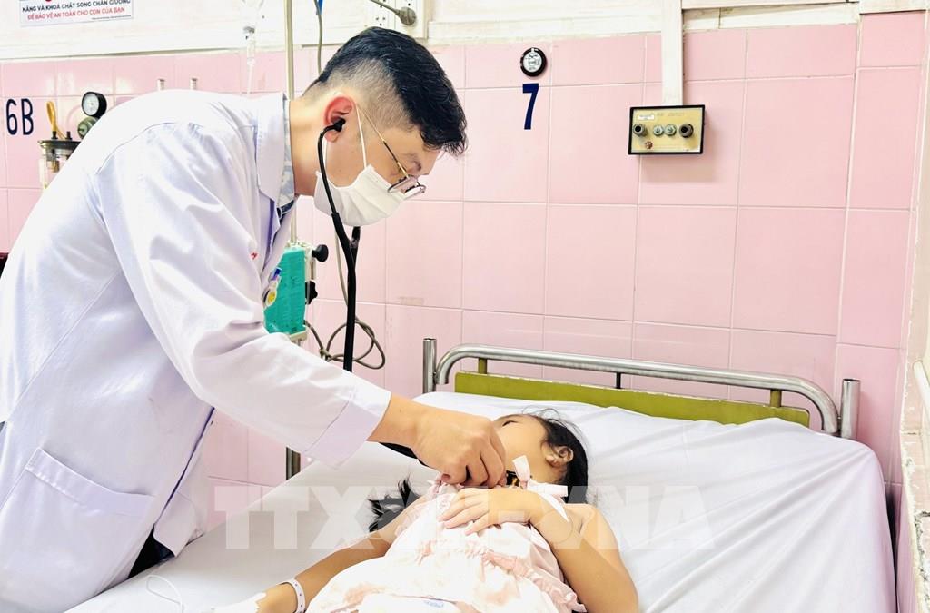 Bác sĩ Bệnh viện Nhân dân Gia Định thăm khám cho học sinh nghi ngộ độc thực phẩm. Ảnh: TTXVN phát