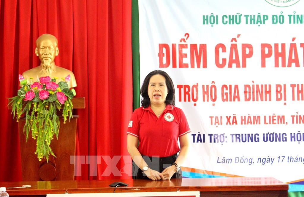 Bà Nguyễn Thị Thanh Nhàn, Phó Chủ tịch Hội Chữ thập đỏ tỉnh Lâm Đồng, phát biểu tại buổi trao quà. Ảnh: Hồng Hiếu- TTXVN