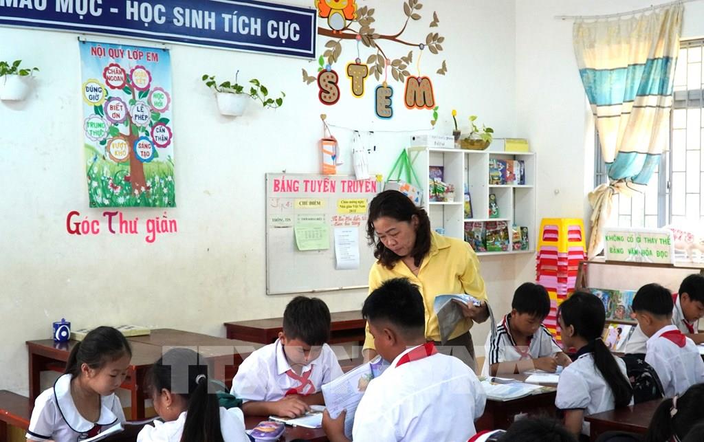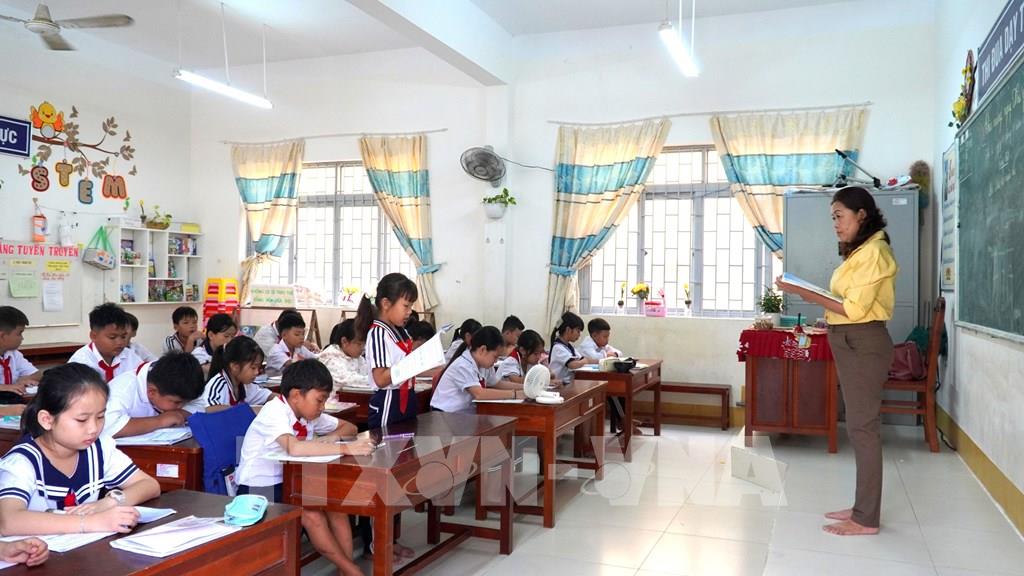 Giờ lên lớp của cô giáo Võ Thanh Kiều, giáo viên Trường Tiểu học và THCS Thổ Châu. Ảnh: Văn Sĩ - TTXVN
