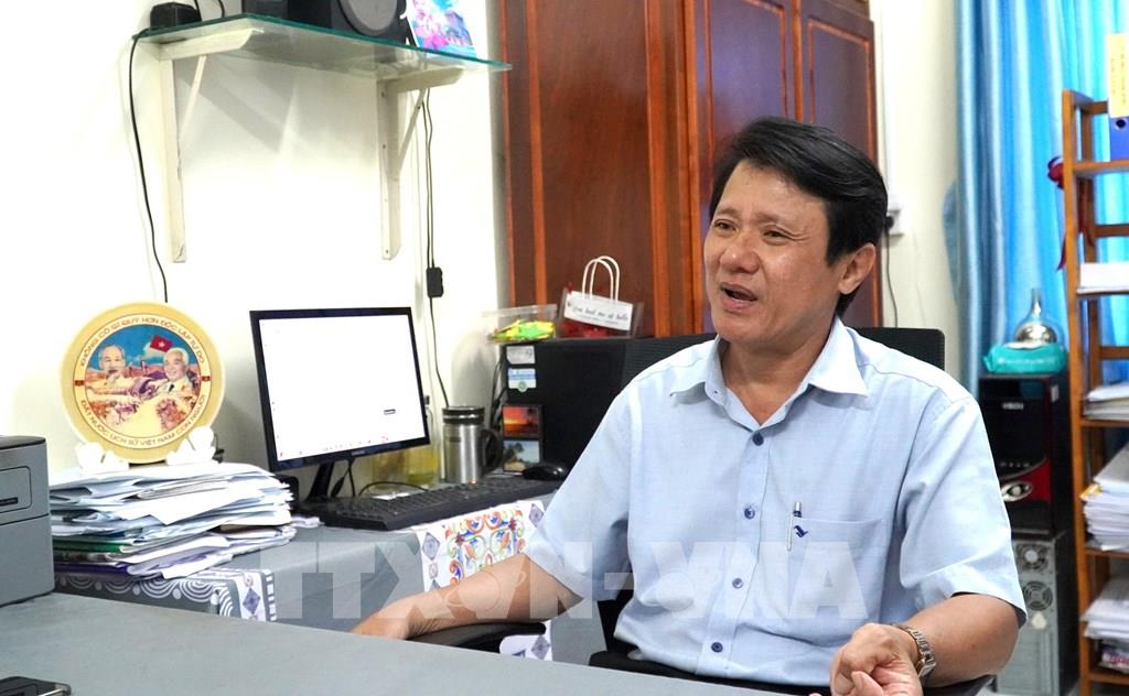 Thầy Phùng Nhật Dũng, Hiệu trưởng Trường Tiểu học Dương Đông 4, đặc khu Phú Quốc chia sẻ với phóng viên TTXVN. Ảnh: Văn Sĩ - TTXVN