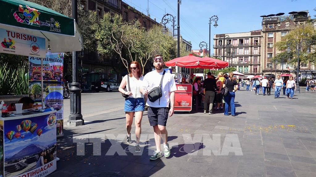 Du khách quốc tế tham quan di tích lịch sử ở thủ đô Mexico City, Mexico. Ảnh: Phi Hùng - PV TTXVN tại Mexico