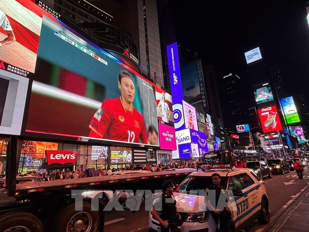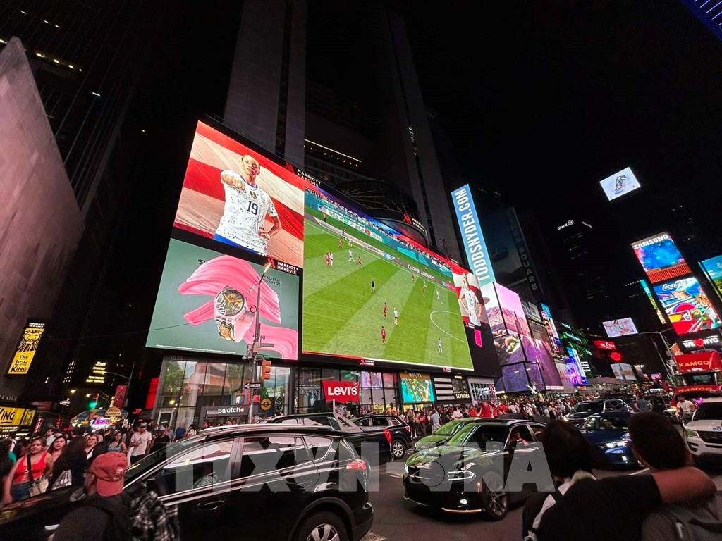 Trận đấu giữa hai đội được phát trực tiếp tại Quảng trường Thời đại ở New York. Ảnh: Thanh Tuấn - P/v TTXVN tại Mỹ
