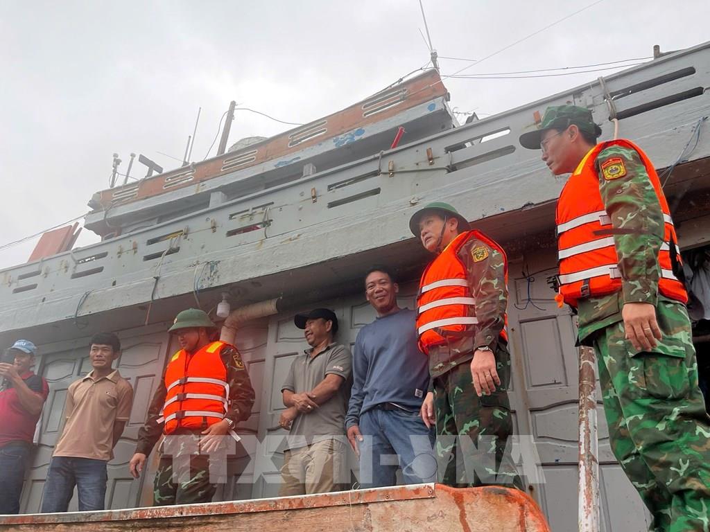 Bộ đội biên phòng Gia Lai vận động ngư dân lên bờ tránh trú bão. Ảnh: TTXVN phát