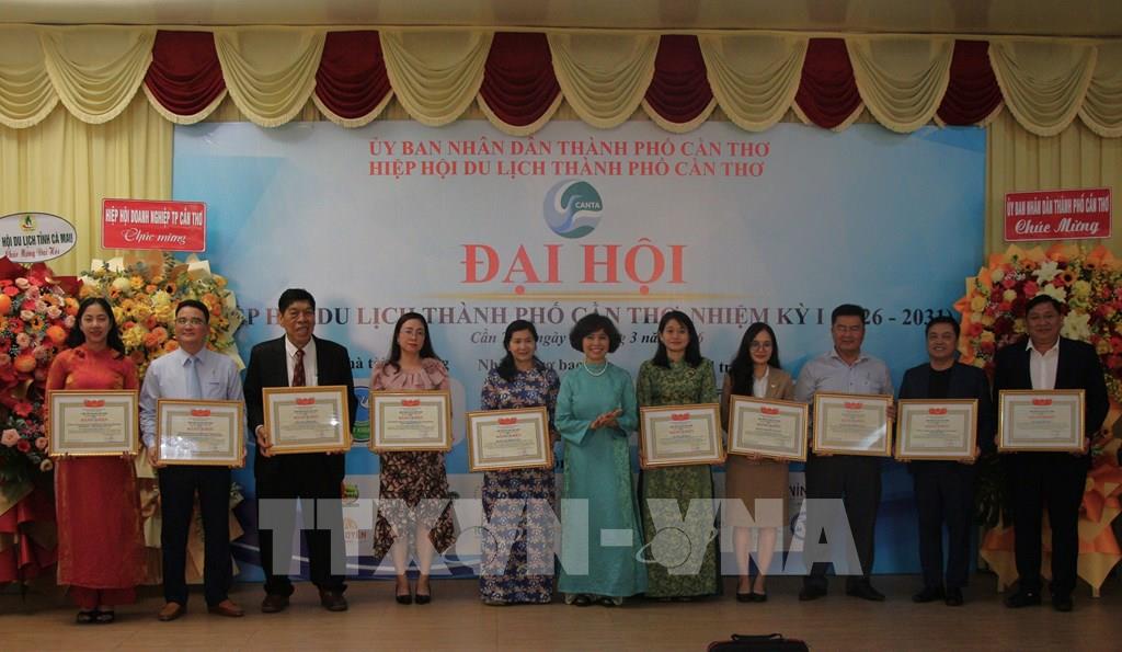 Ông Vưu Chấn Hùng, Chủ tịch Hiệp hội Du lịch thành phố Cần Thơ cho biết, Đại hội thống nhất bầu Ban Chấp hành Hiệp hội du lịch thành phố Cần Thơ nhiệm kỳ 2026-2030 gồm 39 thành viên và Ban kiểm tra gồm 4 thành viên. Thời gian tới, Hiệp hội du lịch thành phố sẽ đẩy mạnh các hoạt động liên kết vùng và xúc tiến thị trường; tăng cường kết nối giữa doanh nghiệp lữ hành, lưu trú, vận chuyển và điểm đến, hình thành chuỗi giá trị du lịch bền vững; triển khai hiệu quả các chương trình hợp tác đã ký kết giữa thành phố với các tỉnh; quan tâm phát triển sản phẩm du lịch địa phương, thúc đẩy du lịch xanh, bền vững, đẩy mạnh chuyển đổi số trong hoạt động du lịch.Dịp này, Hiệp hội du lịch Việt Nam tặng Bằng khen cho 5 tập thể, 5 cá nhân hoàn thành xuất sắc nhiệm vụ tại đơn vị, tham gia tích cực các hoạt động của Hiệp hội Du lịch Việt Nam. Chủ tịch Hiệp hội du lịch Cần Thơ tặng Giấy khen cho 16 tập thể, 7 cá nhân đạt thành tích xuất sắc trong công tác và có nhiều đóng góp cho hoạt động của Hiệp hội năm 2025.