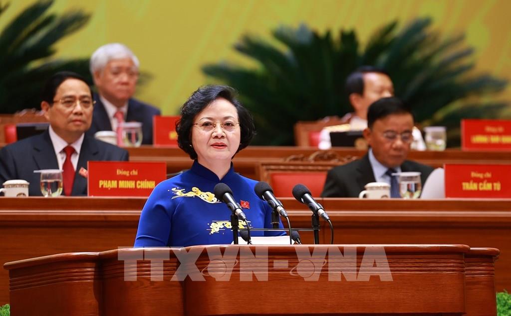 Đồng chí Phạm Thị Thanh Trà, Ủy viên Trung ương Đảng, Ủy viên Ban Thường vụ Đảng ủy Chính phủ, Phó Thủ tướng Chính phủ, tham luận về vấn đề: Xây dựng Chính phủ “Kiến tạo phát triển, liêm chính, hành động quyết liệt, phục vụ Nhân dân”. Ảnh: TTXVN