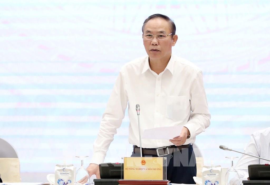 Thứ trưởng Bộ Nông nghiệp và Môi trường Phùng Đức Tiến trả lời câu hỏi của phóng viên các cơ quan thông tấn, báo chí. Ảnh: Phạm Kiên - TTXVN