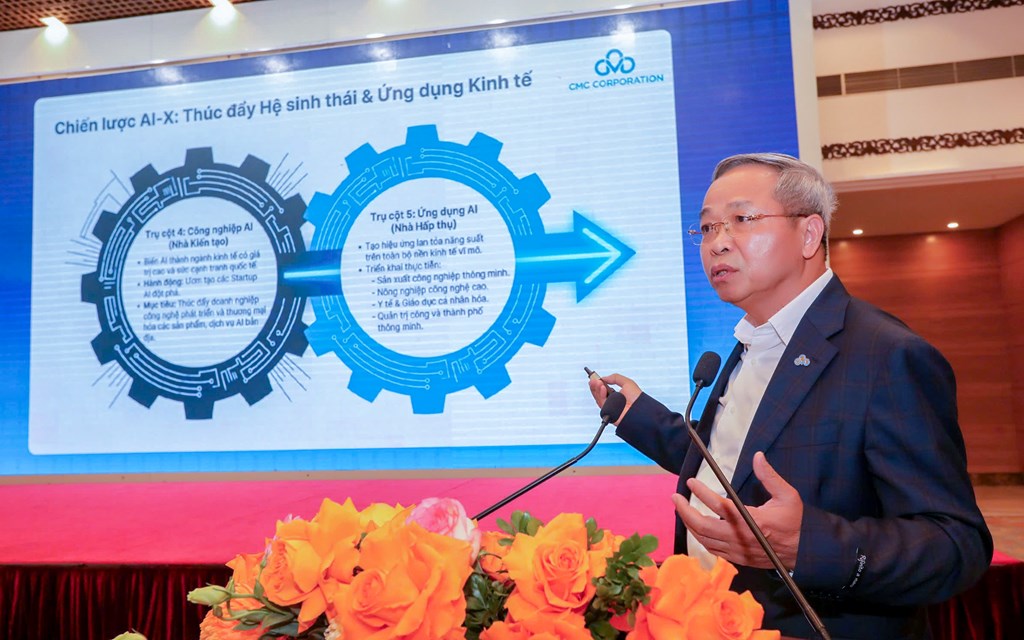 Ông Nguyễn Trung Chính đề xuất cần từng bước hình thành Khung chiến lược chuyển đổi AI Quốc gia (AI-X) như một lộ trình phát triển tổng thể đưa Việt Nam tiến tới nền kinh tế AI. Theo cách tiếp cận này, dữ liệu là điều kiện cần, còn AI là tầng giá trị cao hơn, nơi dữ liệu được chuyển hóa thành năng suất, sản phẩm, dịch vụ và năng lực cạnh tranh quốc gia.Theo đề xuất, khung chiến lược này gồm 8 trụ cột, 12 chương trình và 50 hành động chiến lược, hướng tới mục tiêu đóng góp từ 150 đến 250 tỷ USD vào nền kinh tế Việt Nam đến năm 2045.