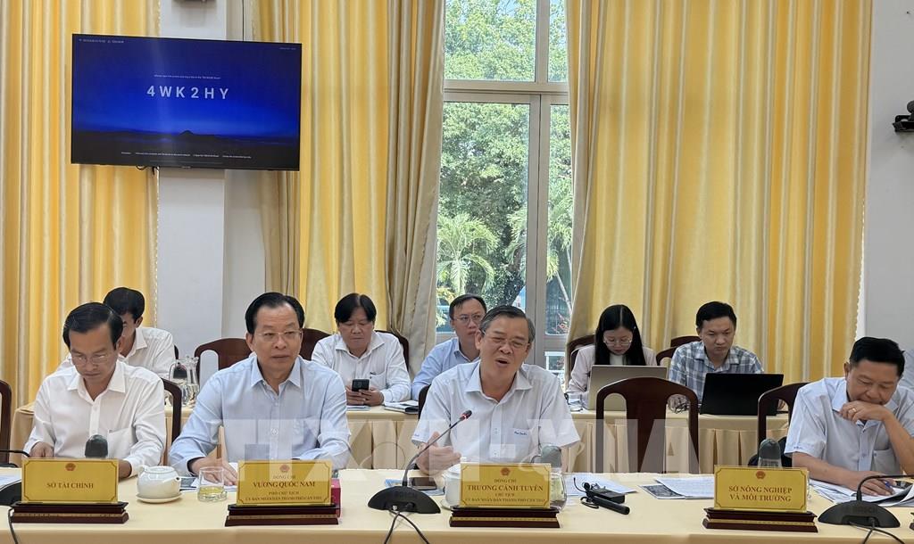 Chủ tịch UBND thành phố Trương Cảnh Tuyên phát biểu tại buổi làm việc. Ảnh: Nguyễn Văn Việt - TTXVN