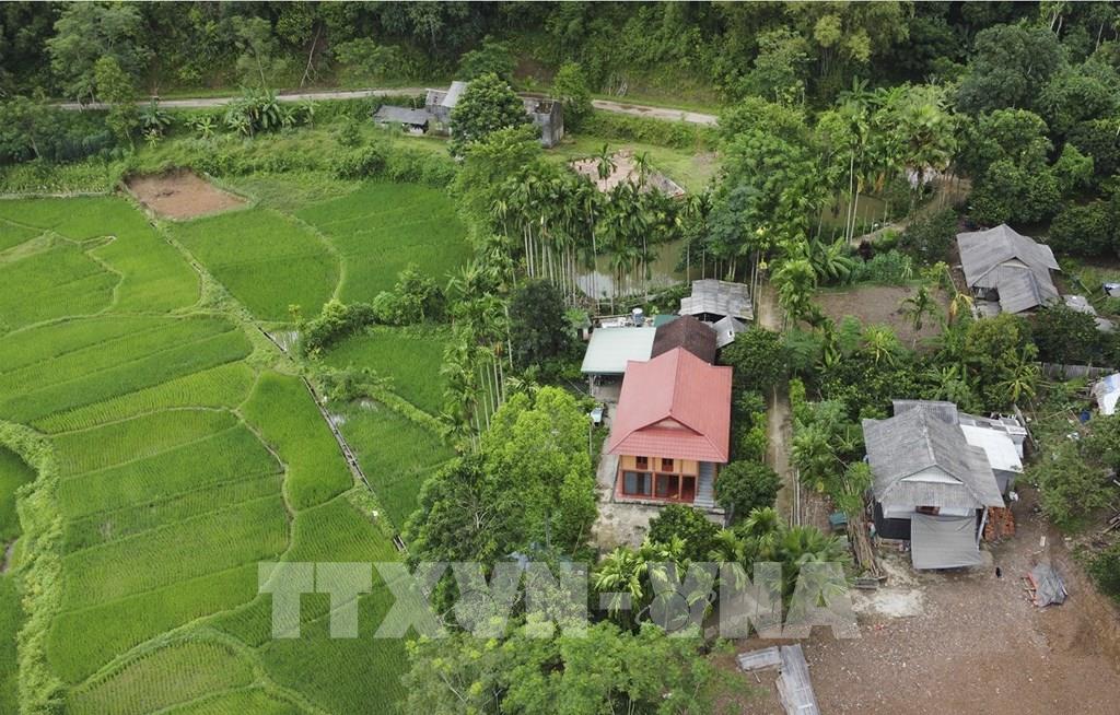 Xóm Lũy Ải hay còn gọi là Mường Ải mang vẻ đẹp hoài niệm với những nóc nhà sàn nằm ven sườn đồi, trong thung lũng xứ Mường Bi rộng lớn. Ảnh: Trọng Đạt-TTXVN