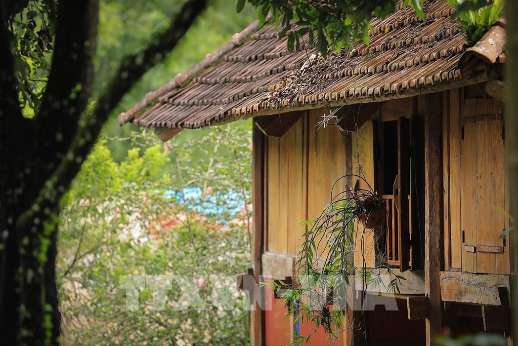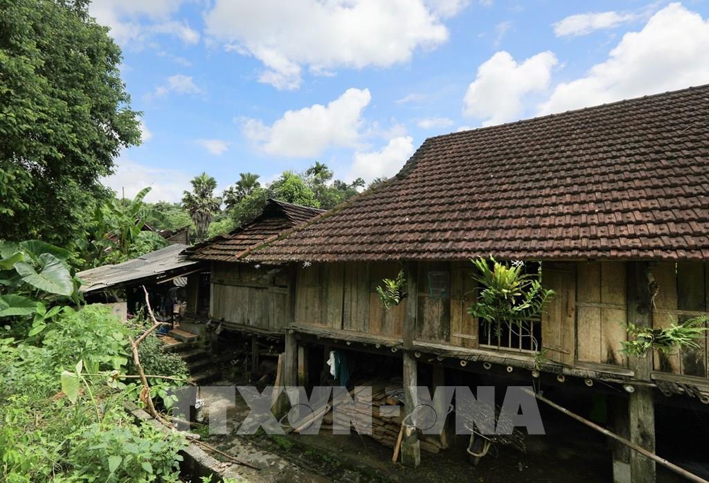Những ngôi nhà sàn trầm mặc cổ kính tại xóm Mường cổ Lũy Ải, xã mường Bi. Ảnh: Trọng Đạt-TTXVN