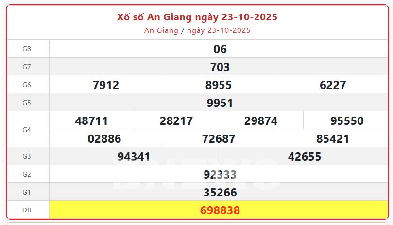 Kết quả xổ số An Giang Thứ Năm ngày 23/10/2025