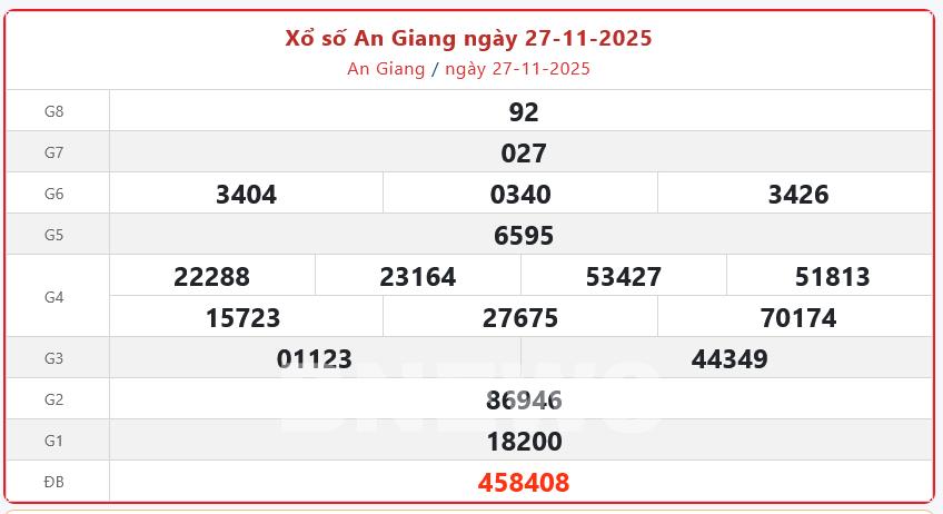 Bnews. XSAG 27/11. Kết quả xổ số hôm nay ngày 27/11. XSAG Thứ Năm. Trực tiếp KQXSAG ngày 27/11. Kết quả xổ số An Giang hôm nay ngày 27/11/2025. Kết quả xổ số An Giang Thứ Năm ngày 27/11/2025.