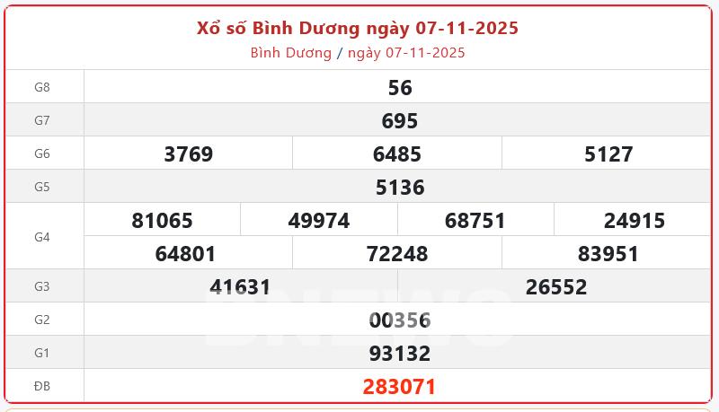 Kết quả xổ số Bình Dương ngày 7/11/2025