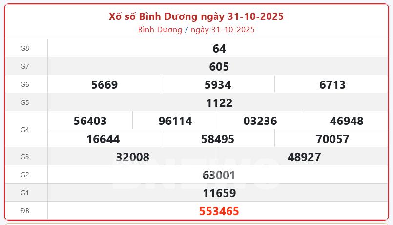XSBD 31/10. Kết quả xổ số Bình Dương hôm nay ngày 31/10/2025. SXBD ngày 31/10