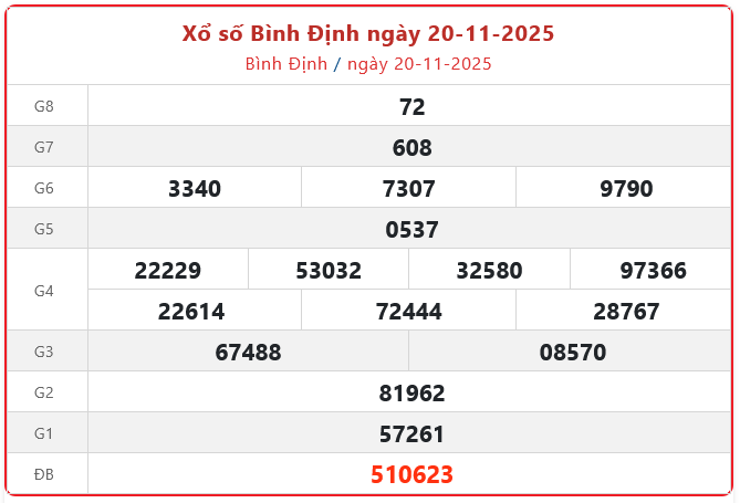 Xổ số Bình Định ngày 20-11-2025. XSBDI - XS đài Bình Định 20/11/2025