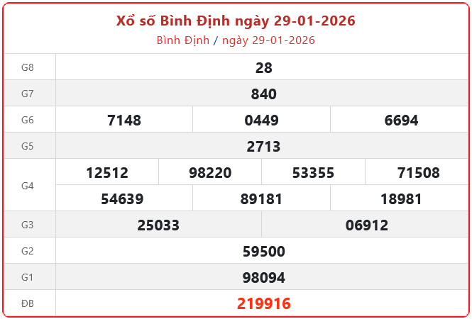Xổ số Bình Định ngày 29-01-2026. XSBDI - XS đài Bình Định 29/1/2026