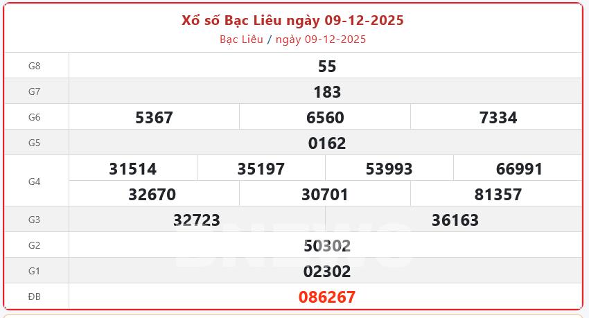 Bnews. XSBL 9/12. Kết quả xổ số hôm nay ngày 9/12. XSBL Thứ Ba. Trực tiếp KQXSBL ngày 9/12. Kết quả xổ số Bạc Liêu hôm nay ngày 9/12/2025. Kết quả xổ số Bạc Liêu Thứ Ba ngày 9/12/2025.