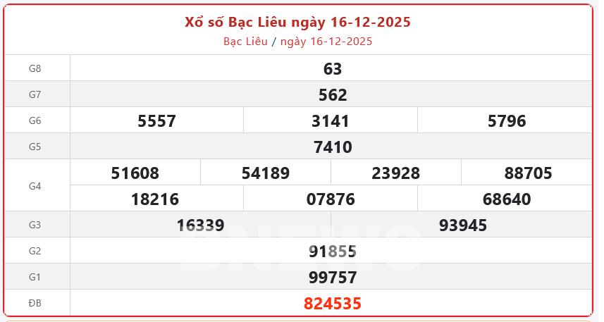 Bnews. XSBL 16/12. Kết quả xổ số hôm nay ngày 16/12. XSBL Thứ Ba. Trực tiếp KQXSBL ngày 16/12. Kết quả xổ số Bạc Liêu hôm nay ngày 16/12/2025. Kết quả xổ số Bạc Liêu Thứ Ba ngày 16/12/2025.