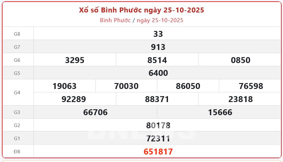 Kết quả xổ số Bình Phước ngày 25/10/2025