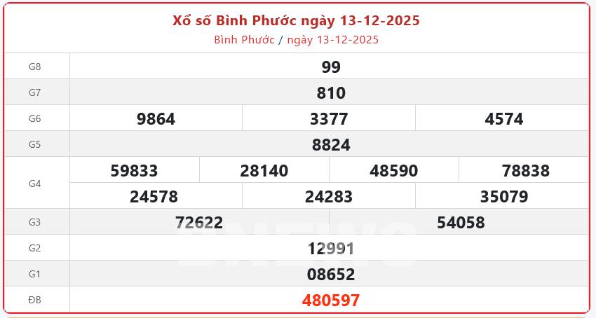 Bnews. XSBP 13/12. Kết quả xổ số hôm nay ngày 13/12. XSBP Thứ Bảy. Trực tiếp KQXSBP ngày 13/12. Kết quả xổ số Bình Phước hôm nay ngày 13/12/2025.
