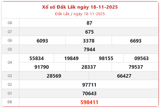 Xổ số Đắk Lắk ngày 18-11-2025. XSDLK - XS đài Đắk Lắk 18/11/2025