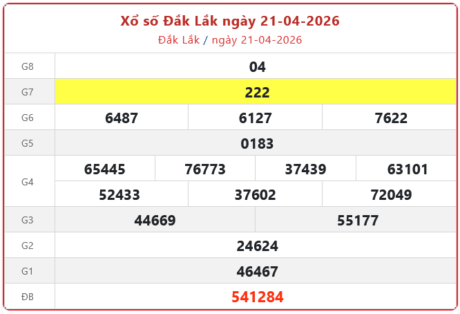 Xổ số Đắk Lắk ngày 21-04-2026. XSDLK - XS đài Đắk Lắk 21/4/2026