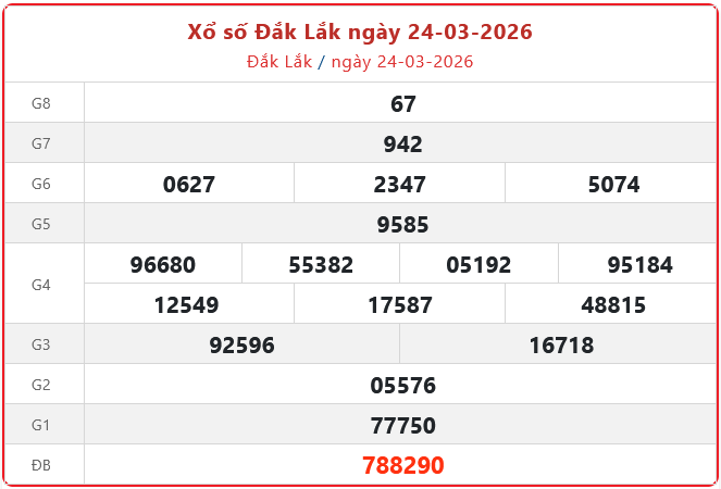 Xổ số Đắk Lắk ngày 24-03-2026. XSDLK - XS đài Đắk Lắk 24/3/2026