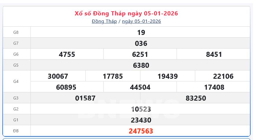 Bnews. XSĐT 5/1. Kết quả xổ số hôm nay ngày 5/1. XSĐT Thứ Hai. Trực tiếp KQXSĐT ngày 5/1. Kết quả xổ số Đồng Tháp hôm nay ngày 5/1/2026. Kết quả xổ số Đồng Tháp Thứ Hai ngày 5/1/2026.