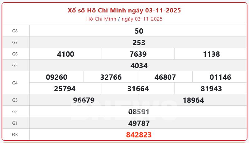 Kết quả xổ số TP. Hồ Chí Minh Thứ Hai ngày 3/11/2025