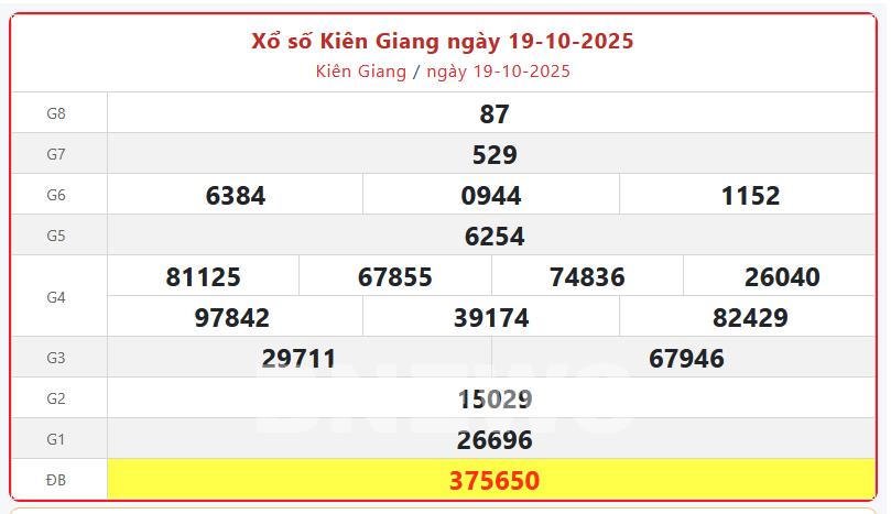 Kết quả xổ số Kiên Giang Chủ nhật ngày 19/10/2025