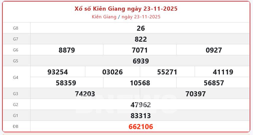 Kết quả xổ số Kiên Giang Chủ nhật ngày 23/11/2025
