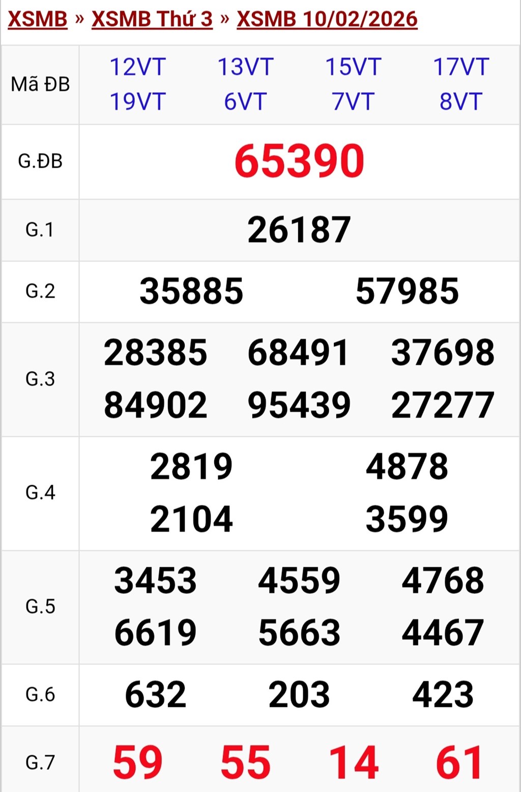 XSMB 10/2. Kết quả xổ số miền Bắc hôm nay ngày 10/2/2026. XSMB thứ Ba ngày 10/2