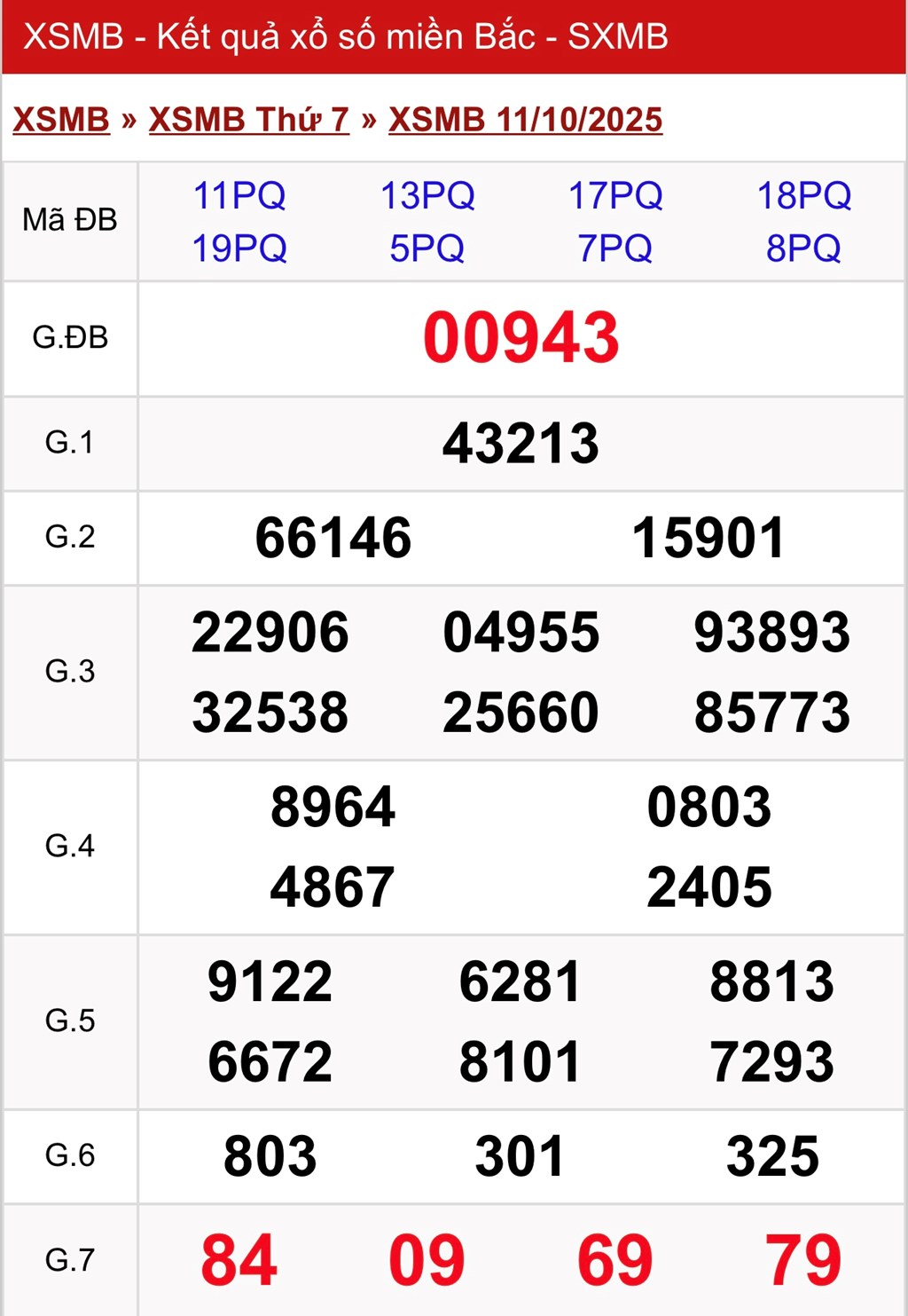 XSMB 11/10. Kết quả xổ số miền Bắc hôm nay ngày 11/10/2025. XSMB thứ Bảy ngày 11/10