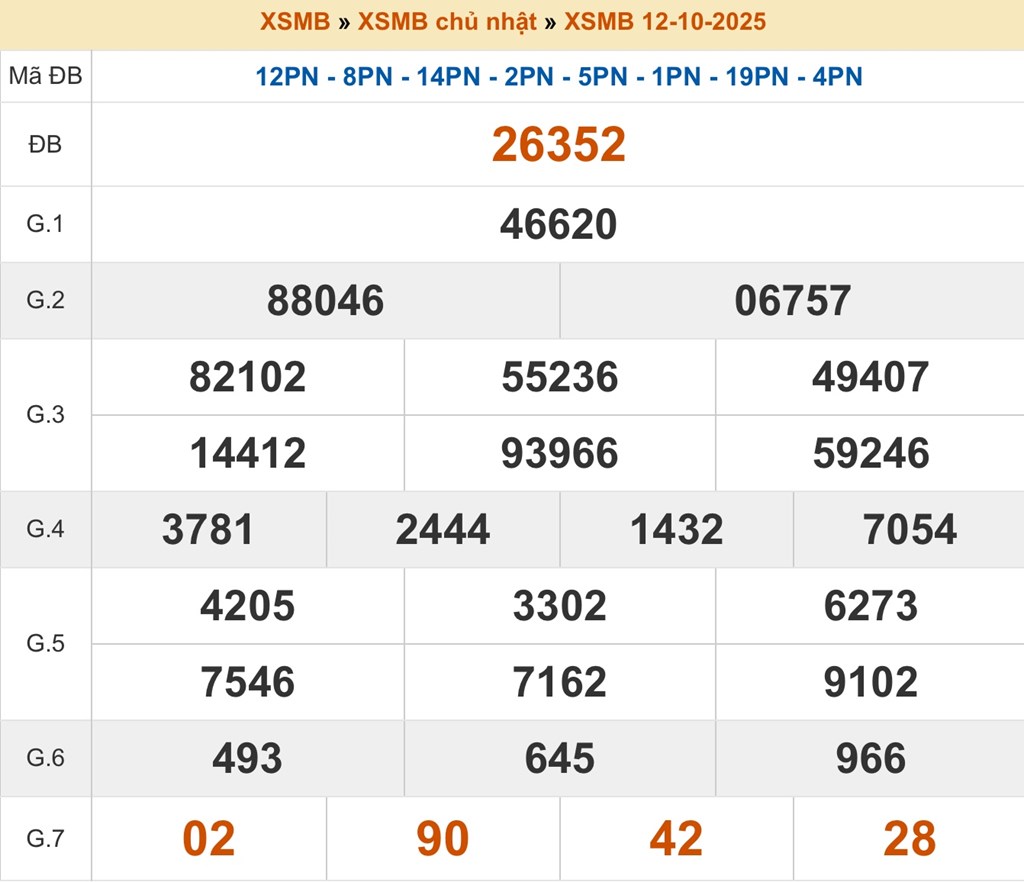 XSMB 12/10. Kết quả xổ số miền Bắc hôm nay ngày 12/10/2025. XSMB chủ Nhật ngày 12/10