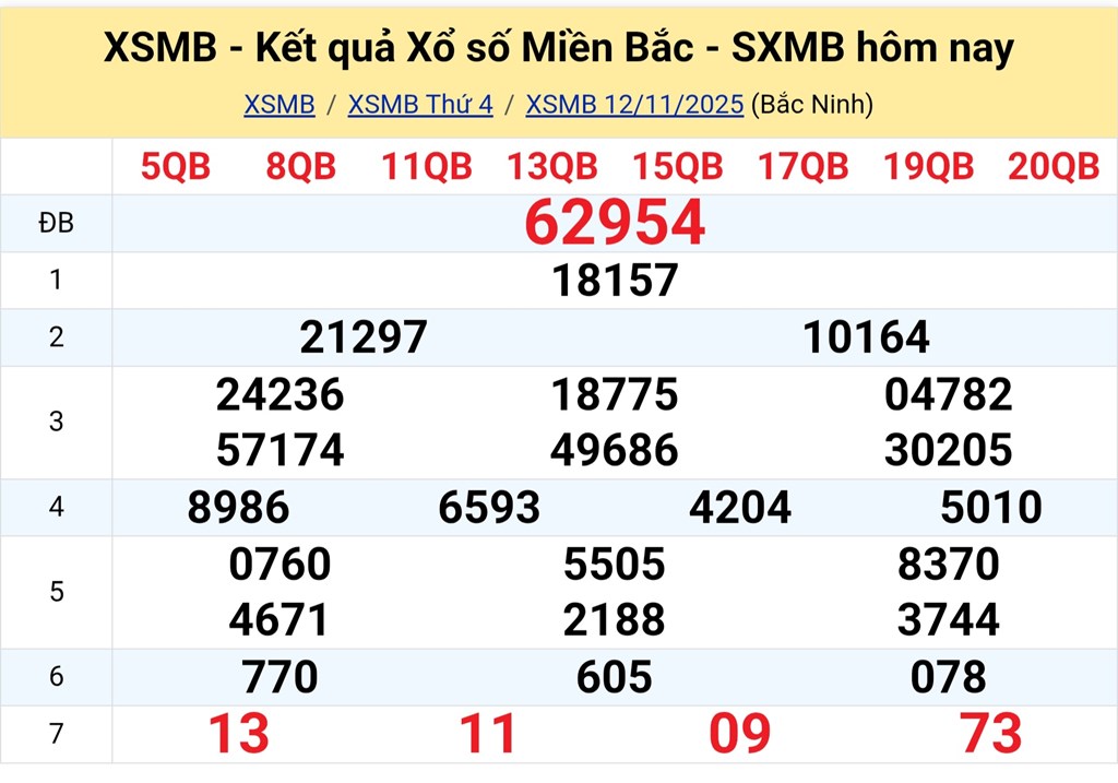 XSMB 12/11. Kết quả xổ số miền Bắc hôm nay ngày 12/11/2025. XSMB thứ Tư ngày 12/11