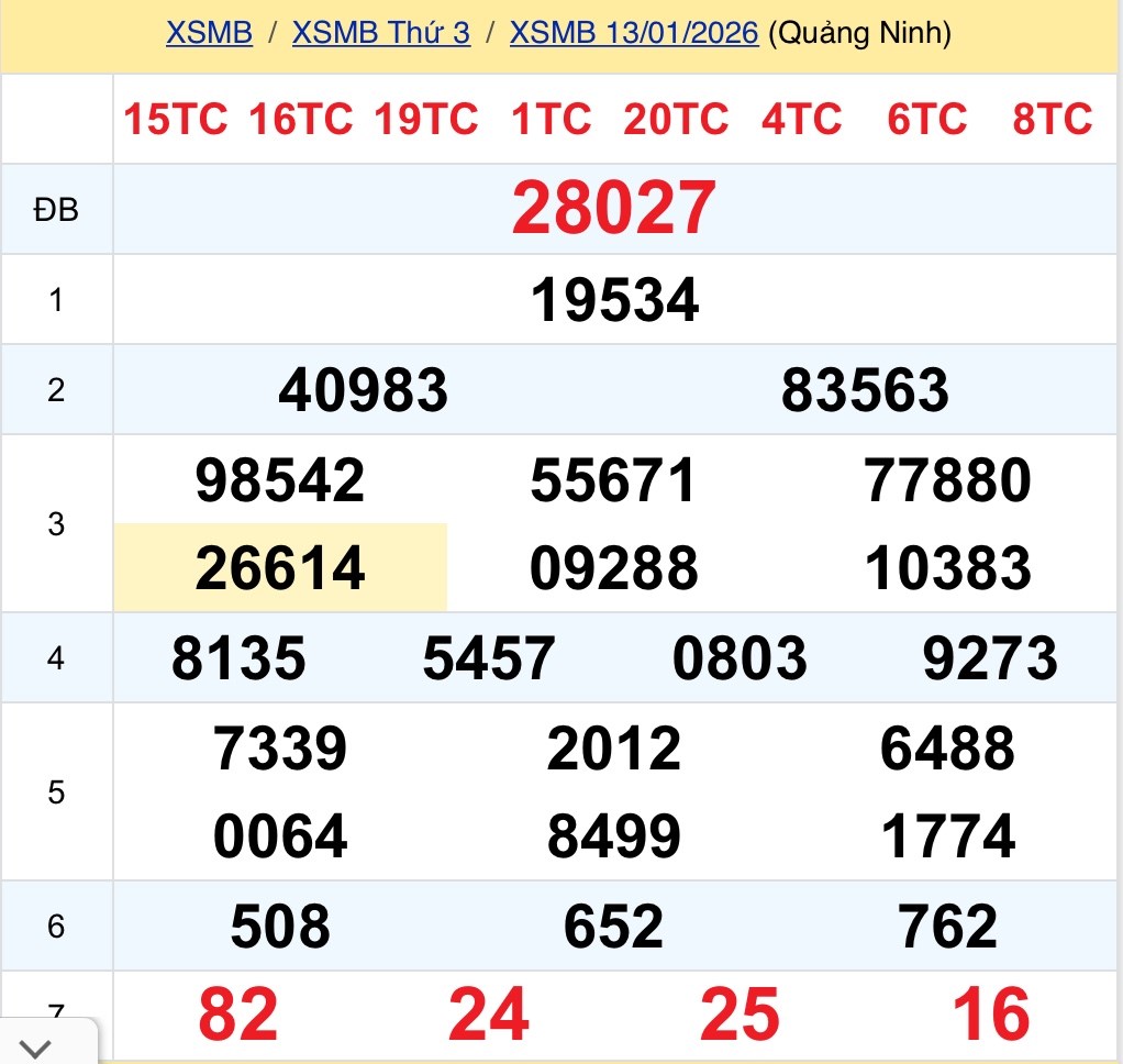 XSMB 13/1. Kết quả xổ số miền Bắc hôm nay ngày 13/1/2026. XSMB thứ Ba ngày 13/1
