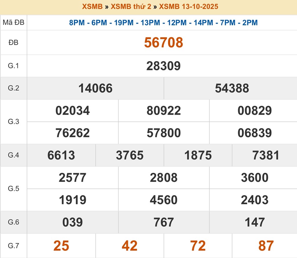 Kết quả xổ số miền Bắc ngày 13/10. KQXSMB 13/10/2025. XSMB 13/10.