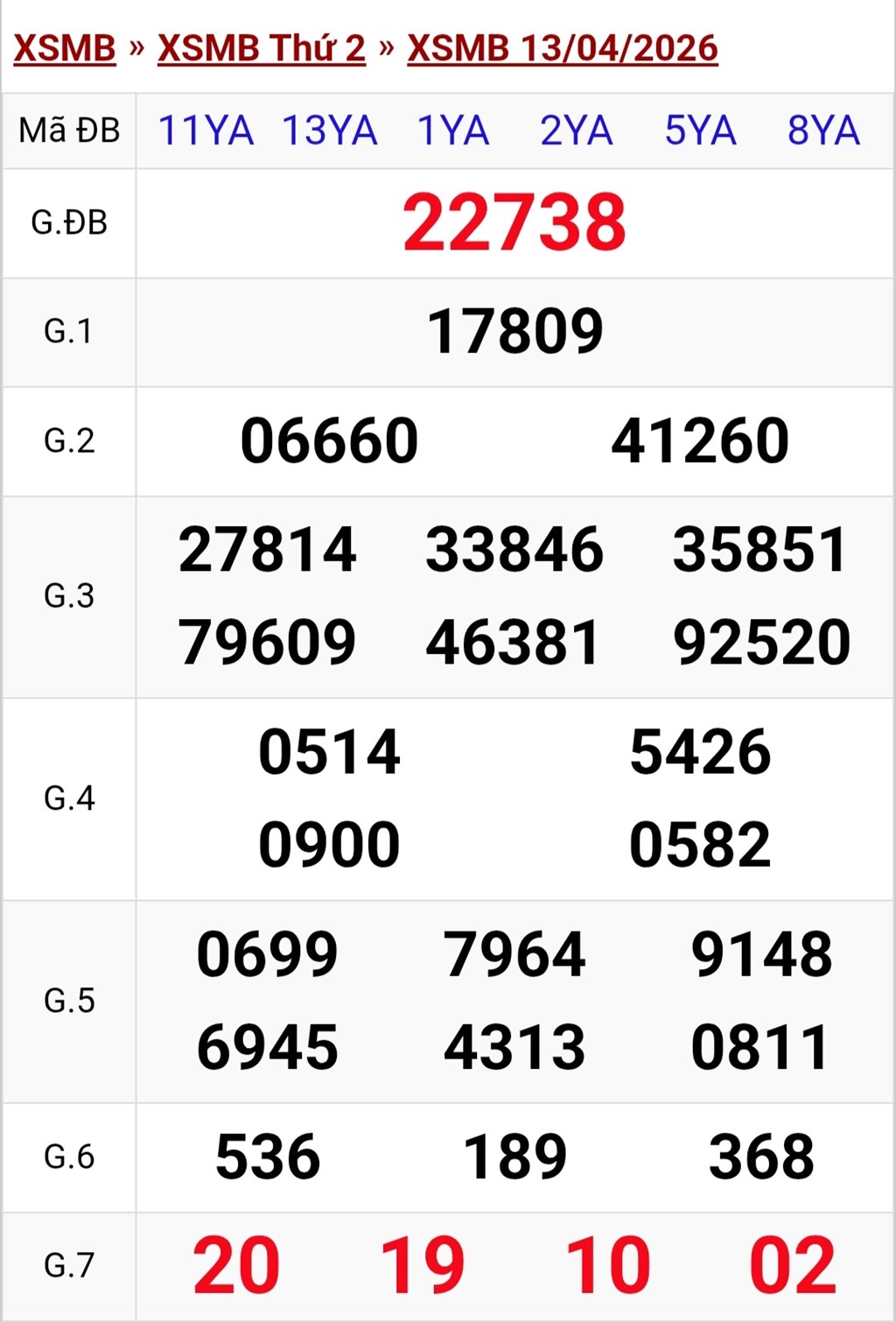 Kết quả xổ số miền Bắc ngày 13/4. KQXSMB 13/4/2026. XSMB 13/4.