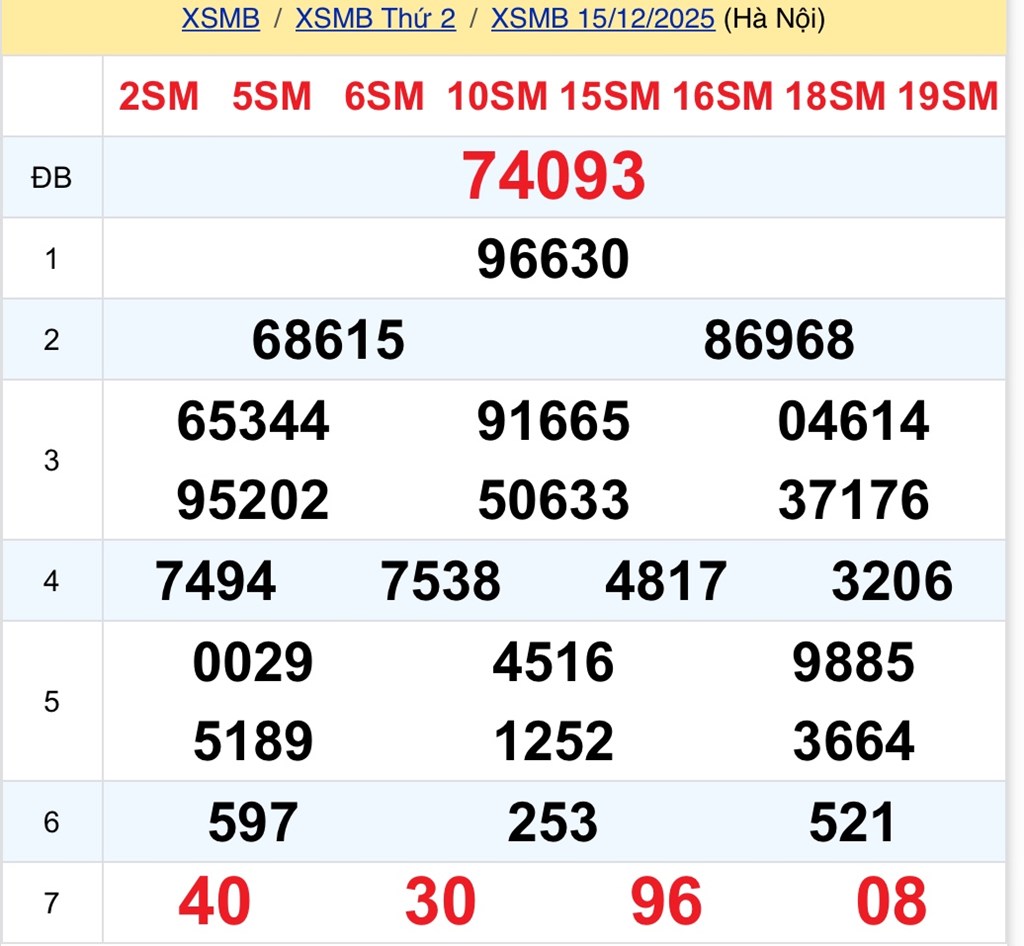 Kết quả xổ số miền Bắc ngày 15/12. KQXSMB 15/12/2025. XSMB 15/12.