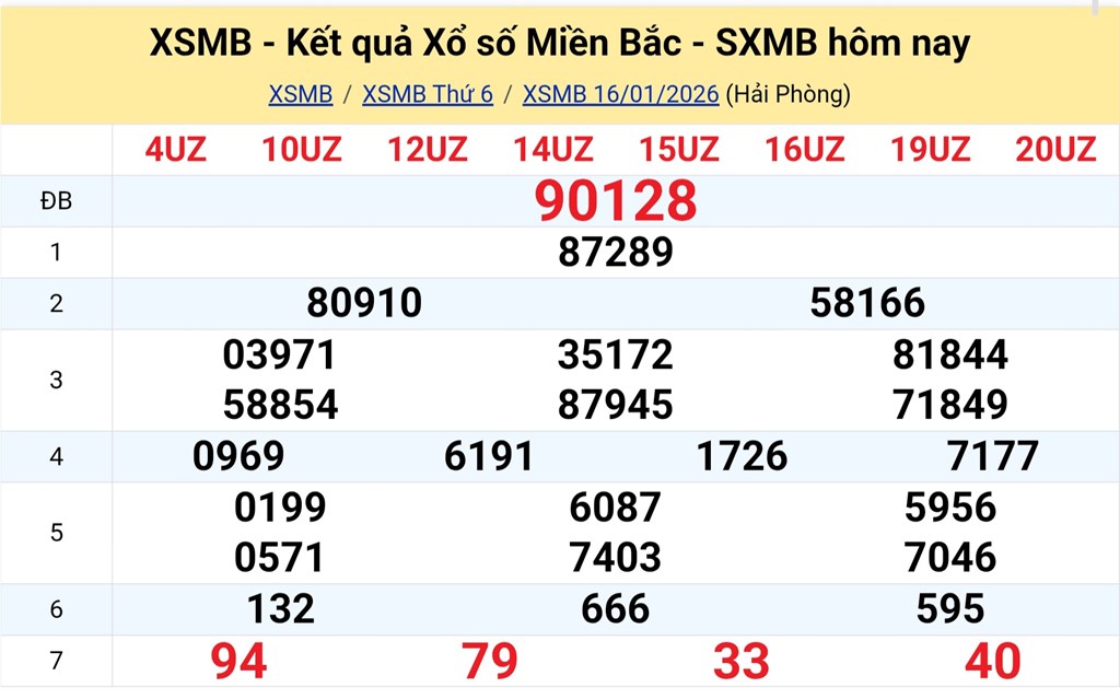 Kết quả xổ số miền Bắc ngày 16/1. KQXSMB 16/1/2026. XSMB 16/1.