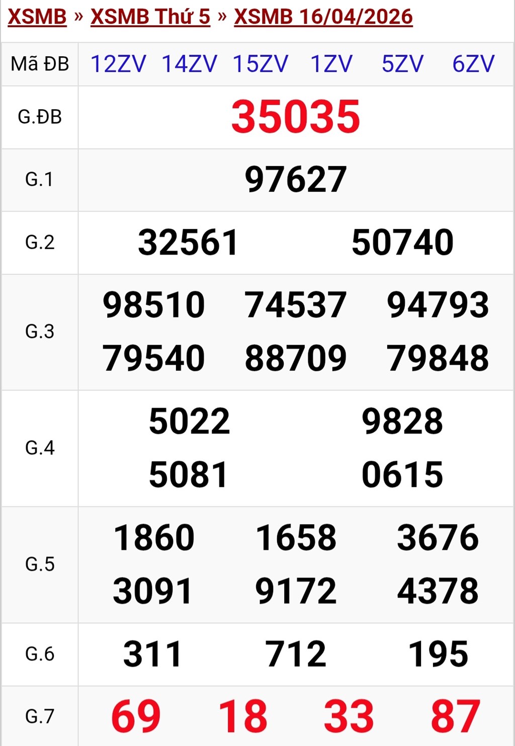 XSMB 16/4. Kết quả xổ số miền Bắc hôm nay ngày 16/4/2026. XSMB thứ Năm ngày 16/4