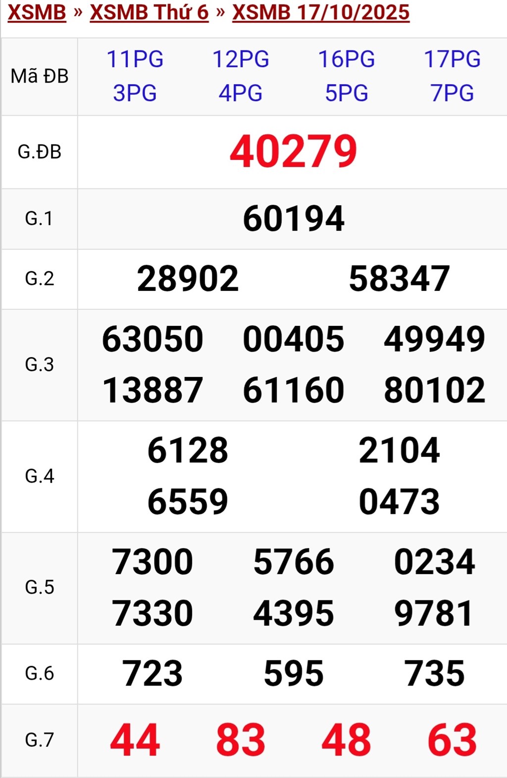 XSMB 17/10. Kết quả xổ số miền Bắc hôm nay ngày 17/10/2025. XSMB thứ Sáu ngày 17/10