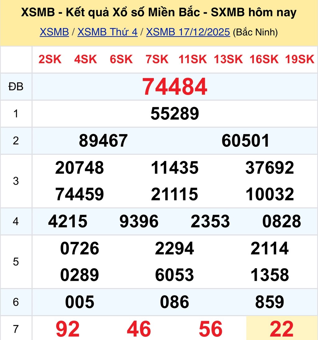 Kết quả xổ số miền Bắc ngày 17/12. KQXSMB 17/12/2025. XSMB 17/12.