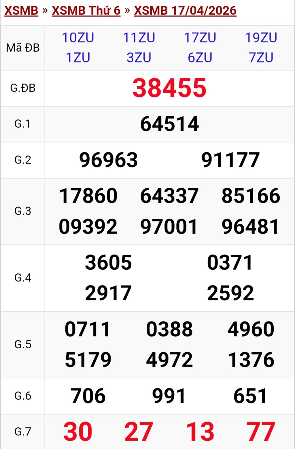 Kết quả xổ số miền Bắc ngày 17/4. KQXSMB 17/4/2026. XSMB 17/4.