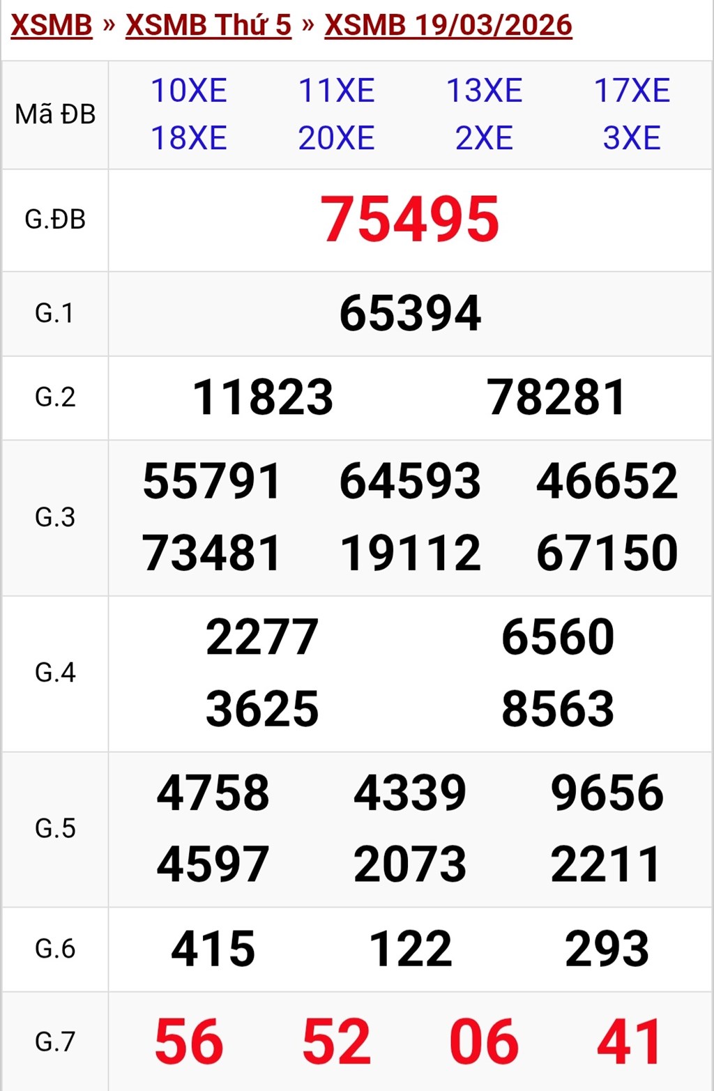 XSMB 19/3. Kết quả xổ số miền Bắc hôm nay ngày 19/3/2026. XSMB thứ Năm ngày 19/3