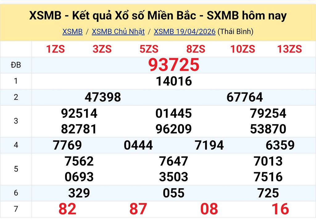 Kết quả xổ số miền Bắc ngày 19/4. KQXSMB 19/4/2026. XSMB 19/4.