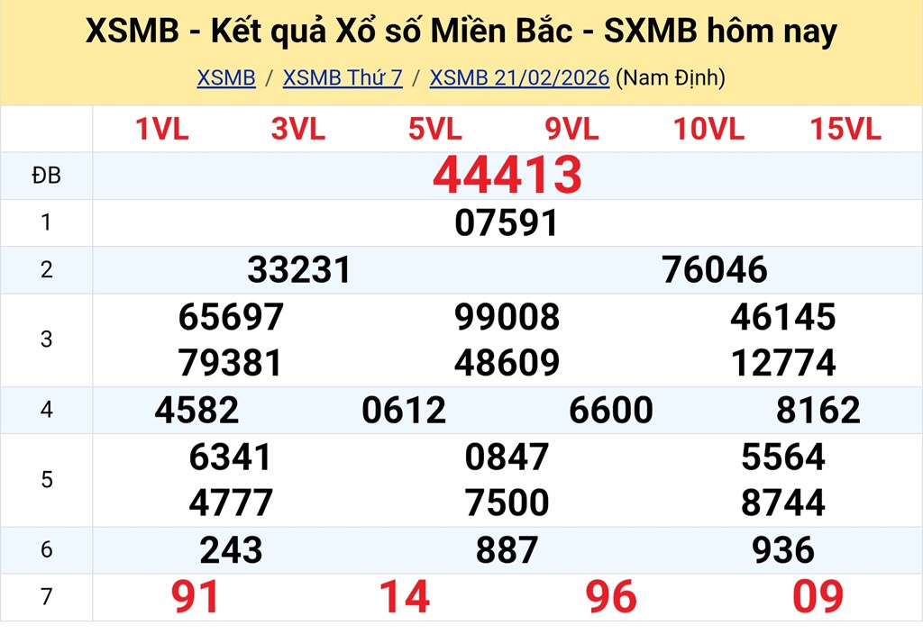 Kết quả xổ số miền Bắc ngày 21/2. KQXSMB 21/2/2026. XSMB 21/2.